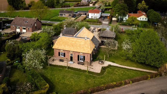 Meters hoog boven de Merkenhorststraat, op een aloude woerd of terp, verheft zich de boerderij Den Tip. Het Is een voor de Betuwe kenmerkende T-boerderij, waarop een fraai rieten wolfsdak prijkt. Er zijn maar weinig plattelandswoningen in de door oorlogsgeweld en naoorlogse sloopwoede van talrijke waardevolle panden beroofde Overbetuwe die zo oud zijn als Den Tip.
